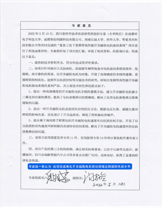四川省科学技术信息研究所组织以四川大学殷国富教授为组长的专家委员会对公司科技成果给予高度评价,认为其具科技创 新代表性、前瞻性、颠覆性技术达国际先进水平。